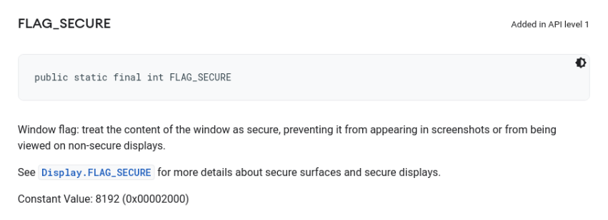 WindowManager.LayoutParams.FLAG_SECURE);