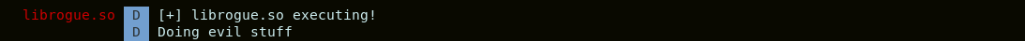 A message in the log reveals that the library librogue.so is executing. No disruptive action is observed. At this point, we can inject our own code in the application and get it executed.