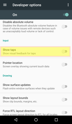 show_touchesoption will still be active. - If the developer options are enabled, and then disabled,